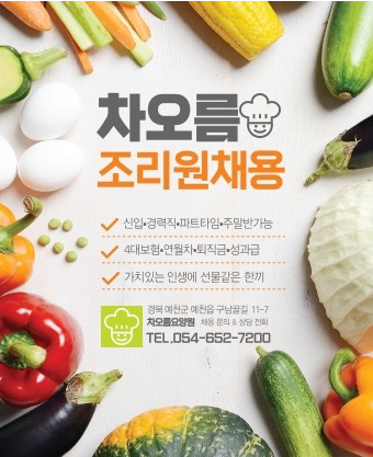 [차오름][채용공고]조리원 상시채용 - 별도문의 - 연말포상 - 장기근속수당지급 대표문의 054-652-7200, 7272 |